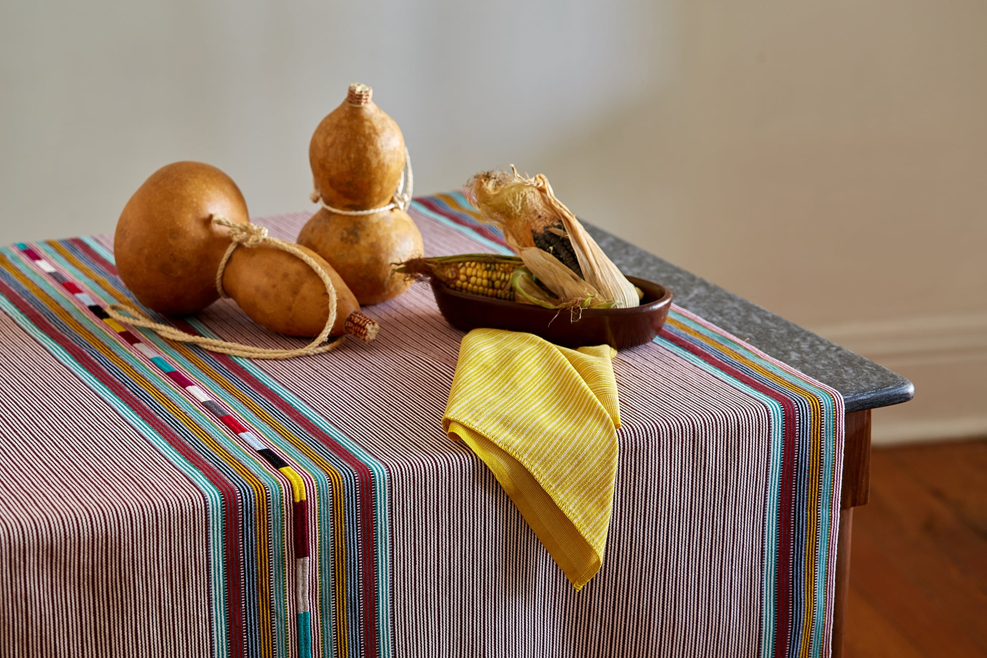 Esta colección es un viaje sensorial a través del tiempo y el espacio. Inspirada en la paleta de los colores primarios y en los elementos icónicos de la cultura mexicana, fusiona la tradición textil ancestral con una visión futurista. Los textiles, objetos y alimentos se entrelazan en una conversación visual que celebra nuestra identidad y diversidad.